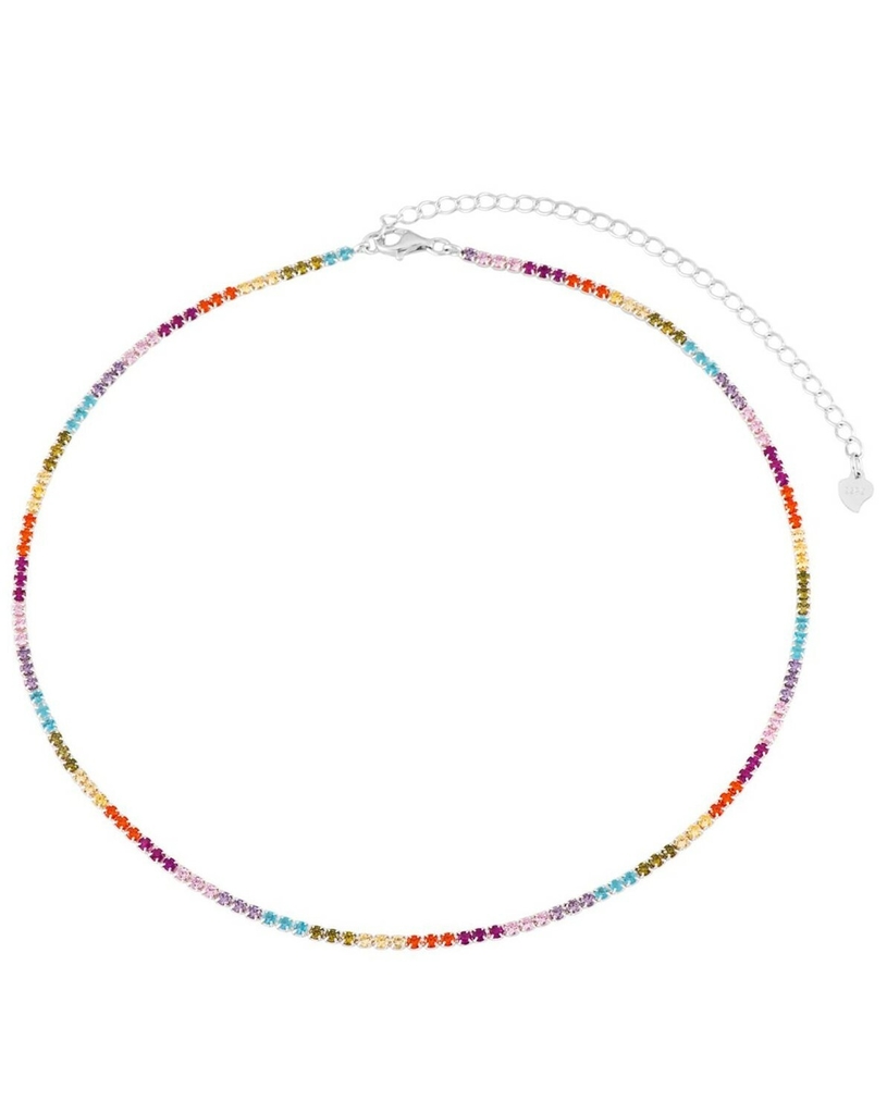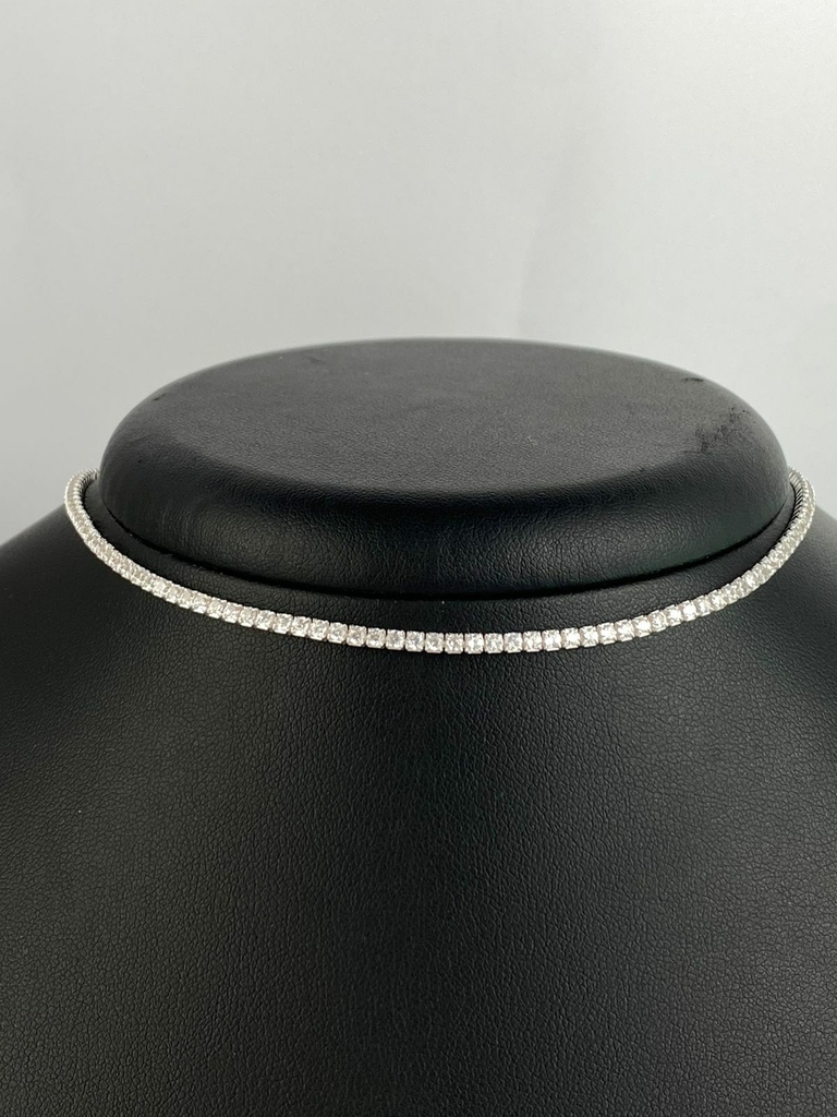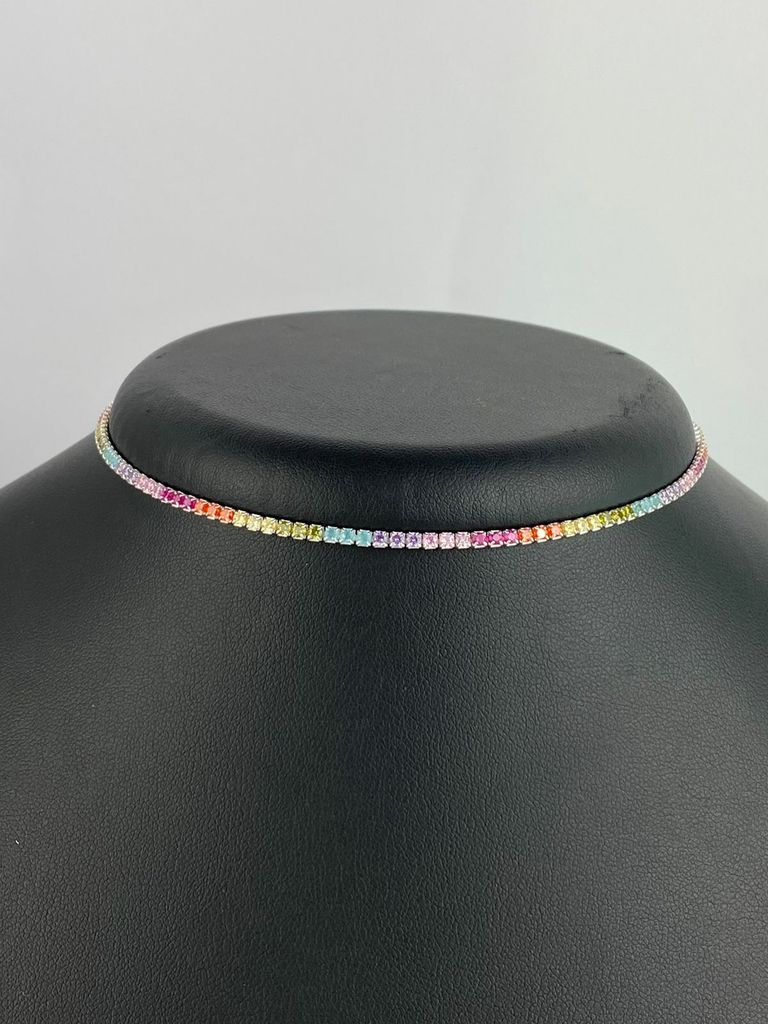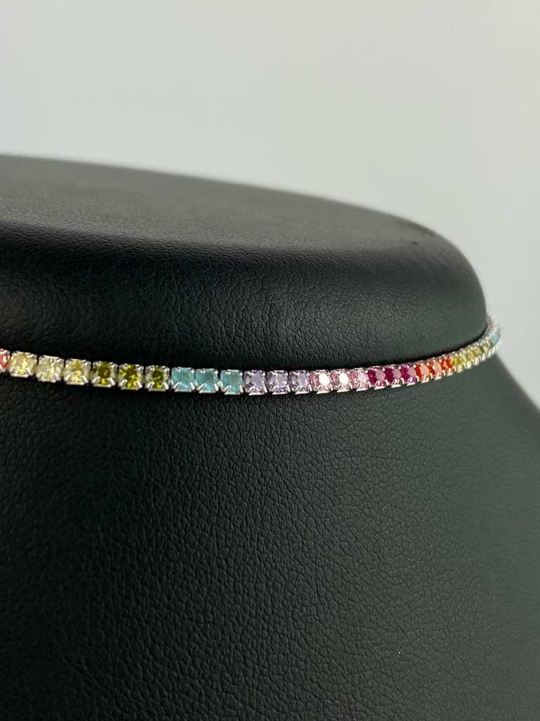 Peça em prata de alta qualidade, corrente de zirconias, disponíveis nas cores branca e colorida.